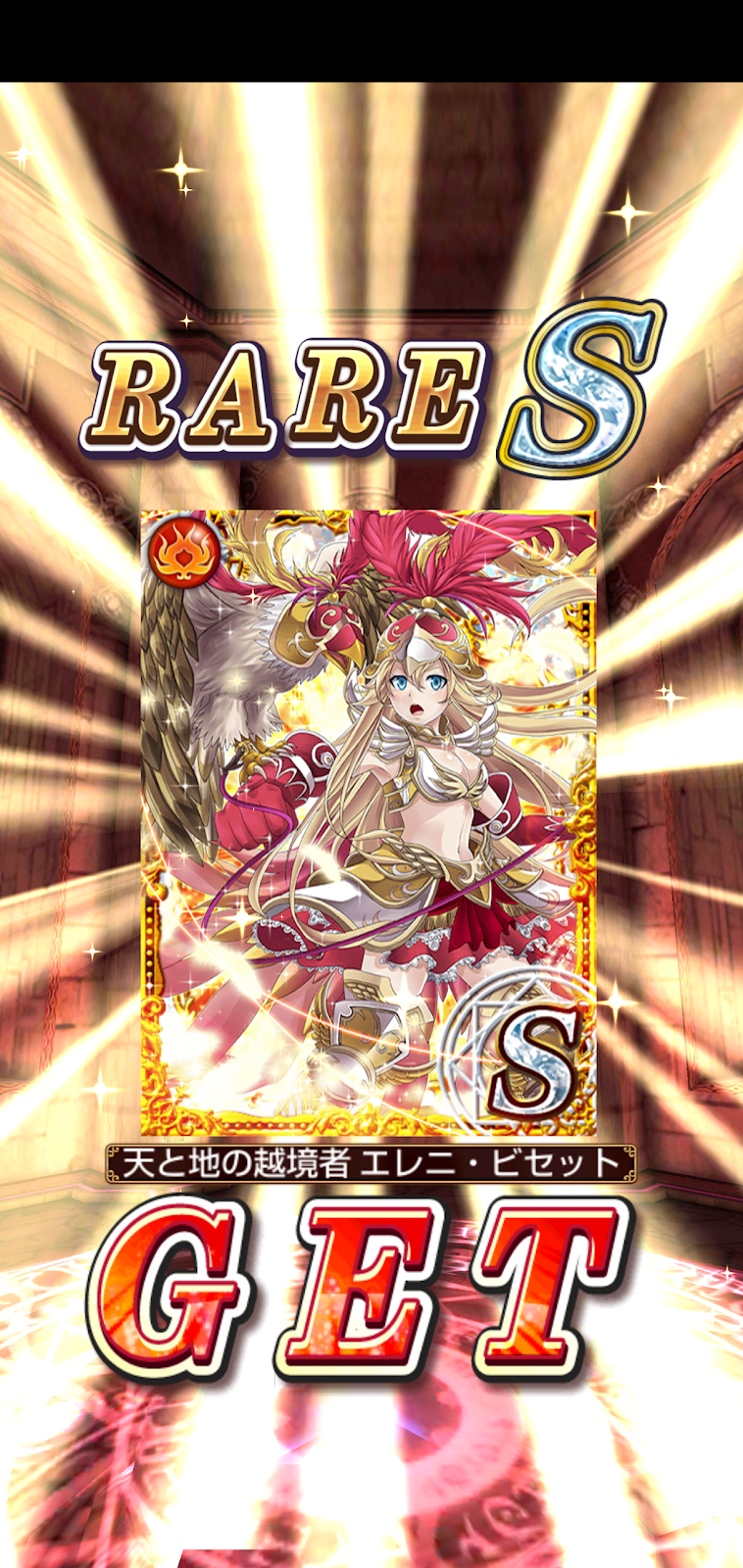 2019年正月無料ガチャの成果 投稿者 くろぼく投稿日:2月 1, 2019 30連分だっけ?ミッションこなすのにヘロヘロだったからどれだけ引いたかも覚えていない……。とりあえず、大勝利した成果(限定精霊っぽいやつ)のみ抜粋。 カード画面で早速音声再生して遊んだ。 早速レイドで活躍した。 早速魔道杯で使おうと思ったけど使えなかった。 早速放置した。早く進化させないと……。 早速スクショ取り忘れてた。 結構、Twitterとかの流見てると当たり引いた人多かったのかな?英雄凱旋よりよっぽど良かった。でもあやかしハード6-3はクソ、はっきりわかんだね。